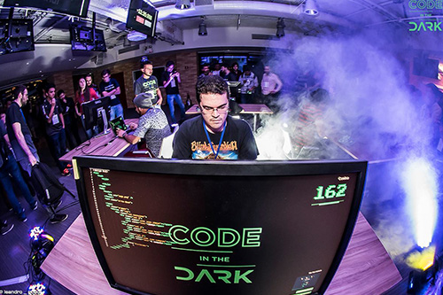 Os participantes de cada bateria serão convidados para o palco principal, e sentarão cada um em um computador. Todo mundo terá o mesmo editor aberto (ele pode ser testado aqui) em cada computador. Não será permitido sair deste editor até o final de cada rodada. Todo seu código estará sendo replicado em um monitor externo voltado para o público, que irá acompanhar o que os competidores estiverem fazendo.